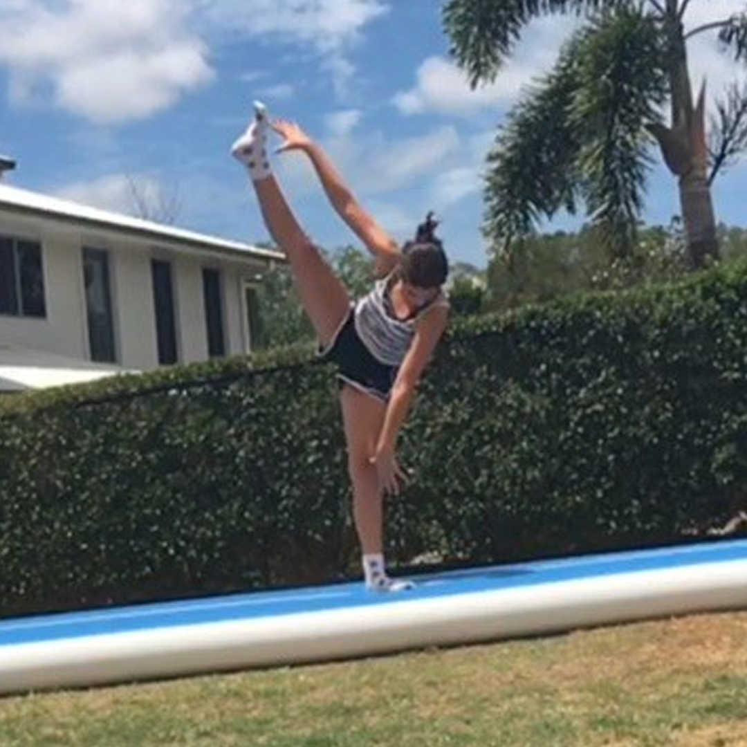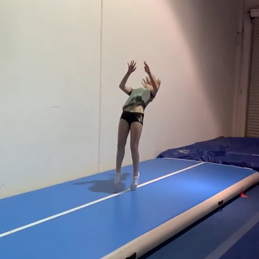 The AirTrackX everFit is 20cm thick, designed for intermediate / advanced Gymnasts, Dancers, Cheerleaders, Acrobats & Martial Artists.